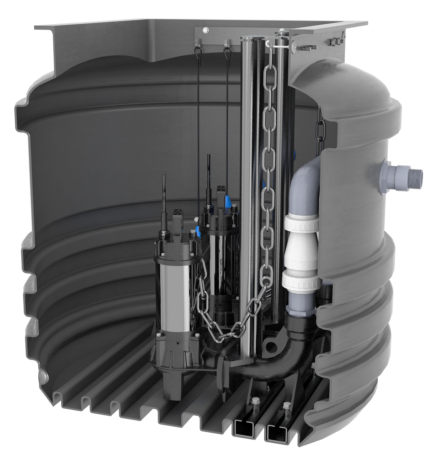 Amos Pumps Pre-assembled packaged pumping stations, working on small, medium or large developments to provide the complete answer to sewage-pumping and grey water problems.